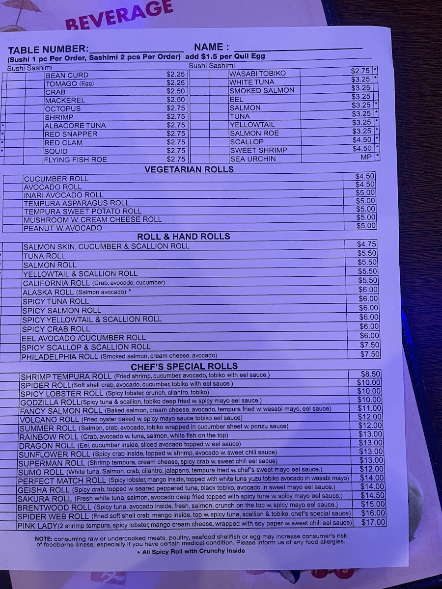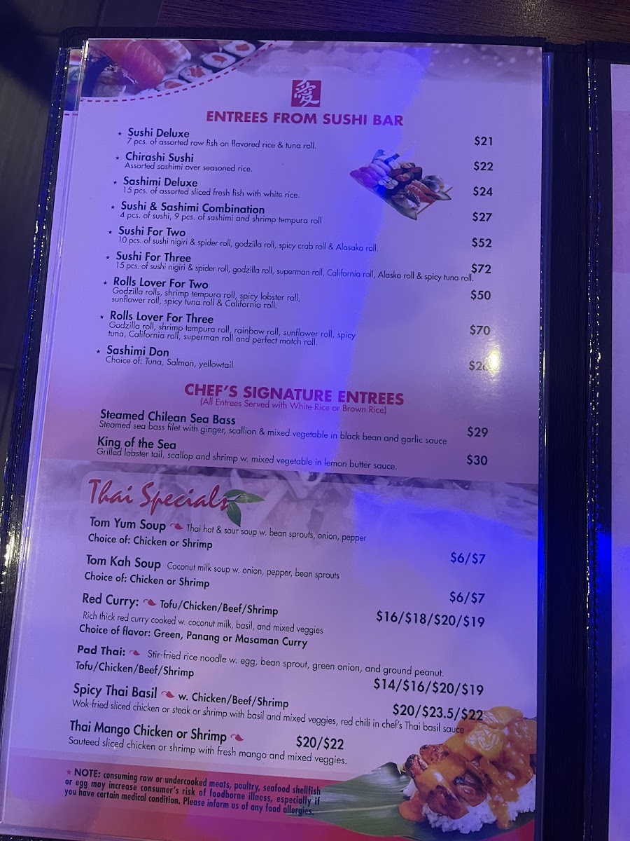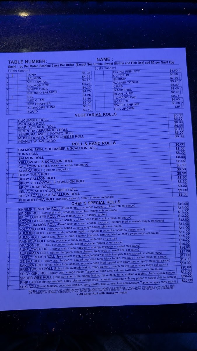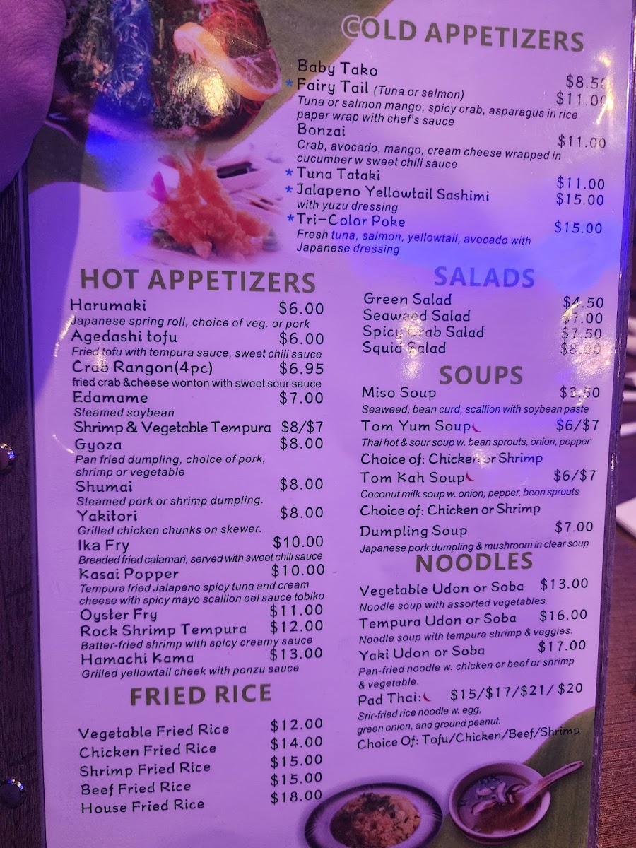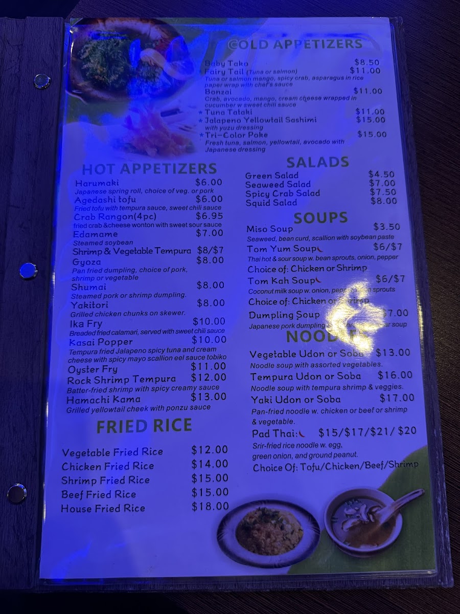 Tuna, mango, spicy crab, asparagus in rice paper wrap with chef's sauce.